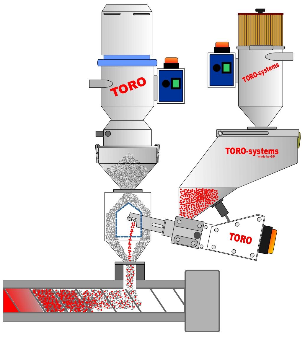 Die Dosiergeräte TORO-systems FG - C-feed sind kompakte Schneckendosiergeräte